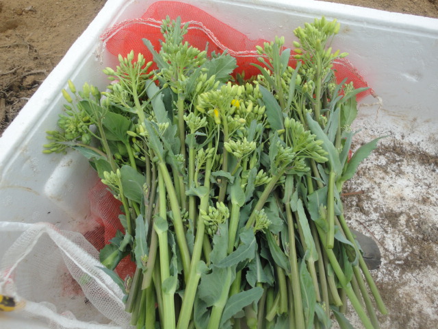 菜花 菜花は花の部分と茎の一部を食べます。茎についた蕾をすこし大きめに切って味噌汁に入れたり、茹でて醤油をかけると美味しいと思います。花が咲きやすいので、早めの植えると年内に食べられますし、遅く蒔くと初夏の収穫となります。時期をずらして蒔くと比較的長期間楽しめます。