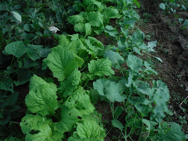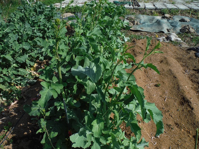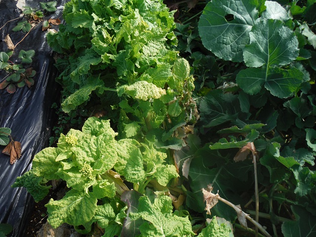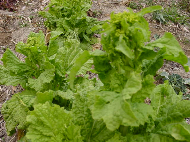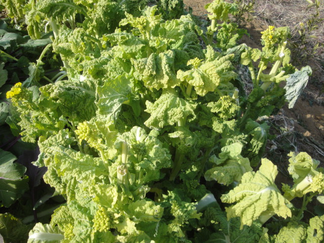 カラシ菜 その名のとおりピリッとした辛味のある野菜です。とりたてて美味しい野菜と言う分けではないですが、辛味は嫌いではないので、』時々栽培しています。
