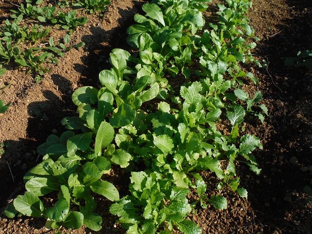 植えつけ時期 夏から遅秋にかけてと春3月頃が種を蒔く適期です。但し一度に種を蒔くといっせいに大きくなり始末に負えないほど収穫する羽目になりますので、家庭菜園の場合少しずつ時期をずらして種を蒔くと何時も新鮮で柔らかい菜っ葉が食べられます。花や太い茎を食べるなら夏蒔き、初夏に柔らかい葉を食べたいなら春先に植える事になります。 夏植えは、ここ埼玉の様にしょっちゅう日本で最高気温を記録するところでは、虫除けなどの管理が大変ですので、秋に少し涼しくなってから蒔く方が楽かも知れません。 日々の手入れ 種を植えてしまえば殆ど手入れが不要な野菜ですが、夏は青虫類が着くことがありますので蝶や蛾が入りこめないような不織布などをかける方が安全です。種蒔の前に育てた野菜によっては、根切り虫が大量に発生して幼苗を食べますので、事前にネキリムシ用の粒剤等を撒いて、ネキリムシを駆除しておく方が安全です。 2016年2月15日更新 |