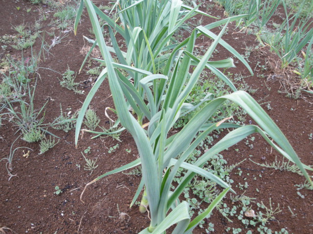 初秋に植えたニンニクが発芽し生育を開始しました。